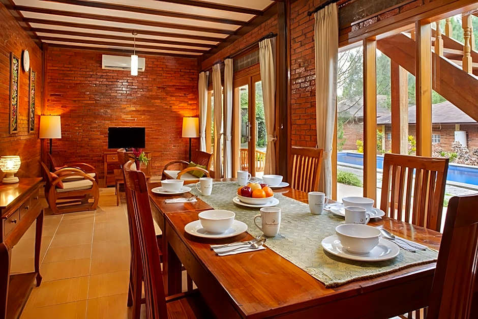 Villa features a separate living area, kitchen and private bathrooms with a shower.
